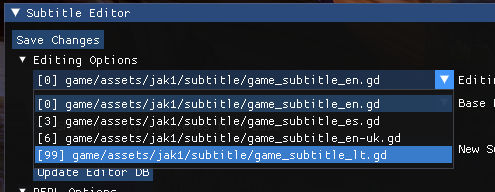 By default, we have the english subtitle editor file selected for editing (id 0), we'll want to change this to our language.