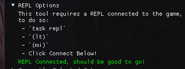 • Note that this tool is a little rough around the edges so if it can't connect you may need to restart the game/repl/both!