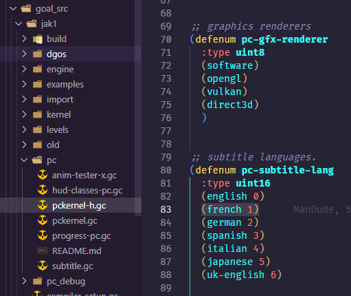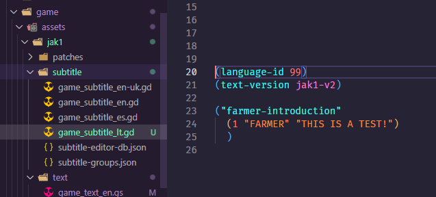 1. We now have to setup text entries for this new language. First add it to the game-text-id enum in the respective all-types.gc file, for Jak 1 that is decompiler/config/all-types.gc