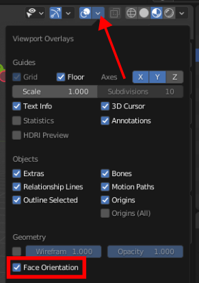 Once you're done with correcting normals, you can disable "Face Orientation" again, do not just deactivate the viewport overlay as that'll hide other useful things.